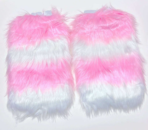 BABY PINK & WHITE Faux Fur STRIPED Leg Warmers Runway RDY