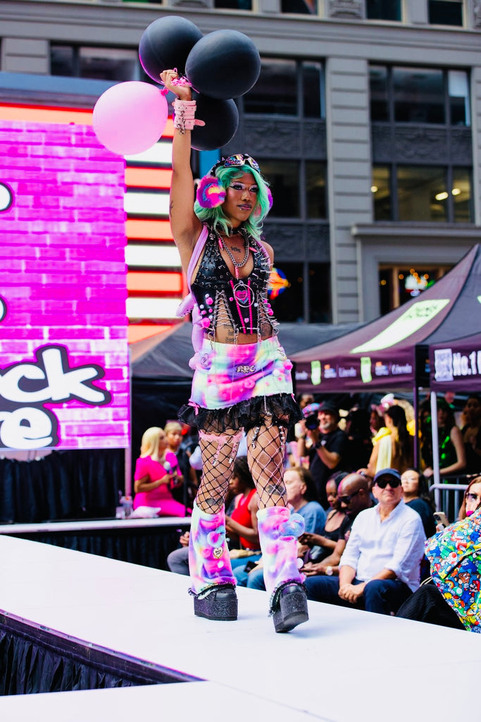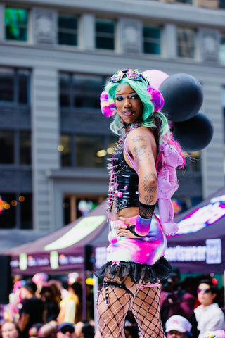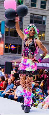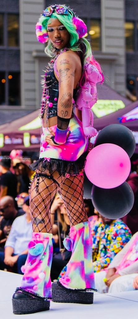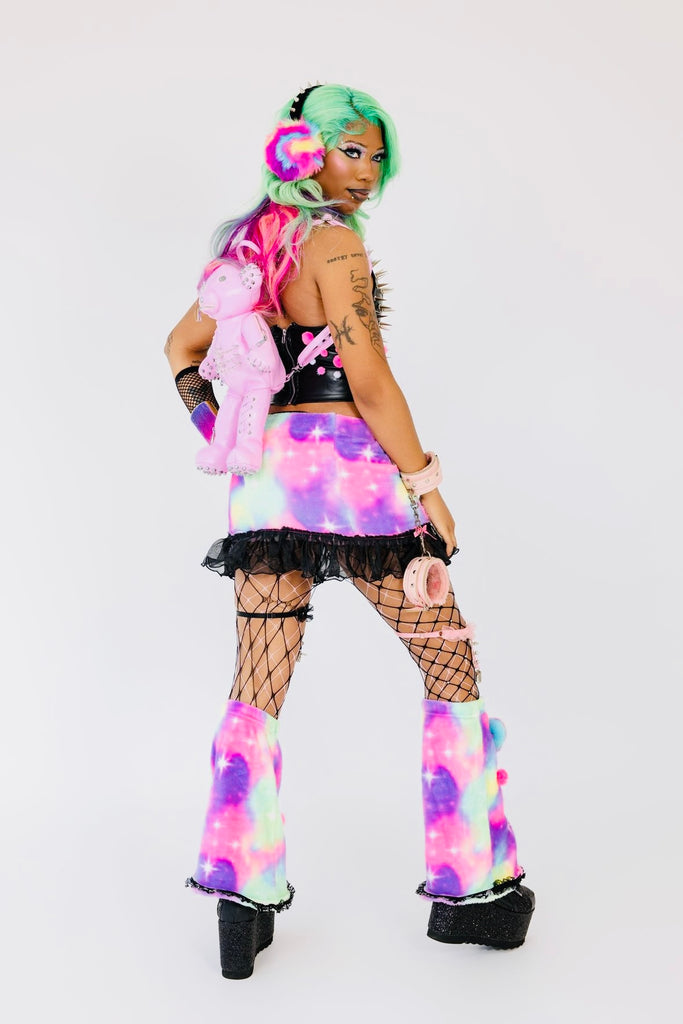 Comes w/ Faux Leather Top, Rainbow Faux Fur Skirt & Rainbow Faux Fur Leg Warmers;)