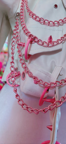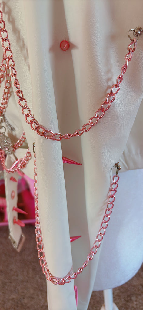 - Pink Punk inspired Metal Chains draped & dangled across the front & outlining the shoulder panels .
